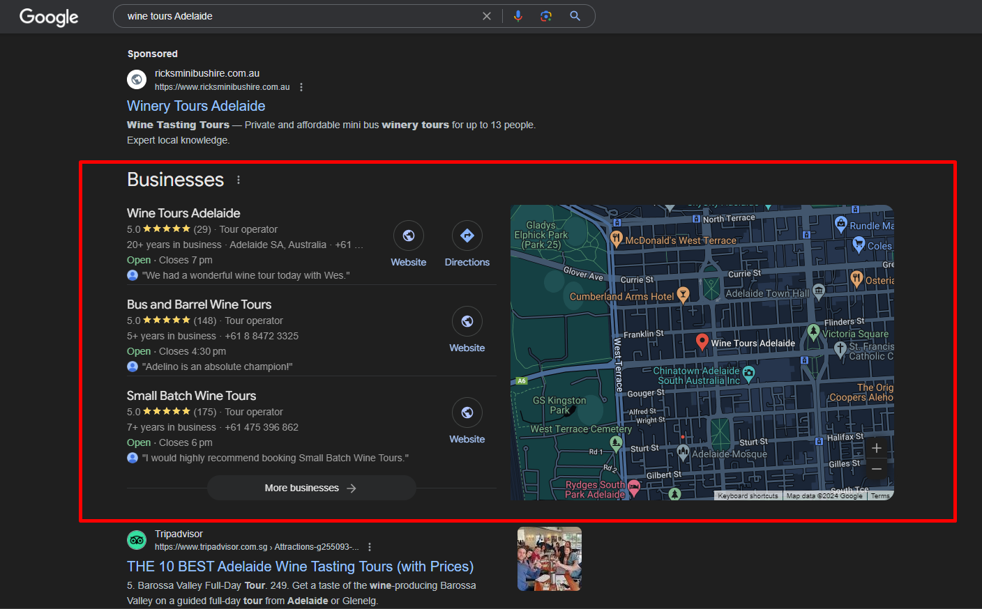 Are you a small wine company based in Adelaide? Well, you might be because Adelaide is a prominent wine-producing area. As of 2024, Adelaide has a whooping 3,250 vineyard owners and 340 cellar doors! Businesses such as wine tours, boutique wineries, and gourmet food services will need local SEO efforts to boost demand and rise above the competition. You’re not going to rely on food traffic when your winery is an hour’s drive away from the main city centre, and pray that random wandering tourists will chance on your premises. You need a more solid business strategy than that, and that’s where Area Ten comes in as your trusted Australian SEO agency.