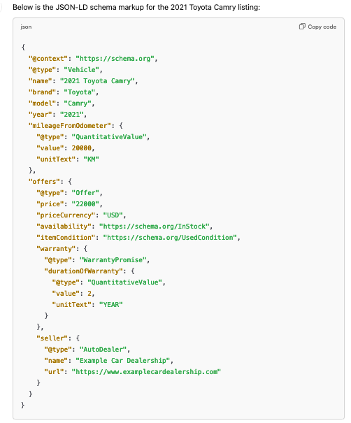Add schema properties like “Car,” “Product” and “Offer,” and you’re giving search engines the keys to understand and showcase your listings in the most impactful way.