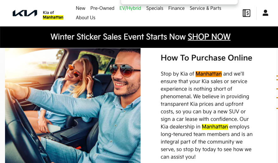 Write about local events you’re sponsoring, like charity drives or parades. Post stories about customers buying their first car for a road trip or upgrading their family vehicle. When your content reflects the community, it’s not just relatable – it’s rankable.