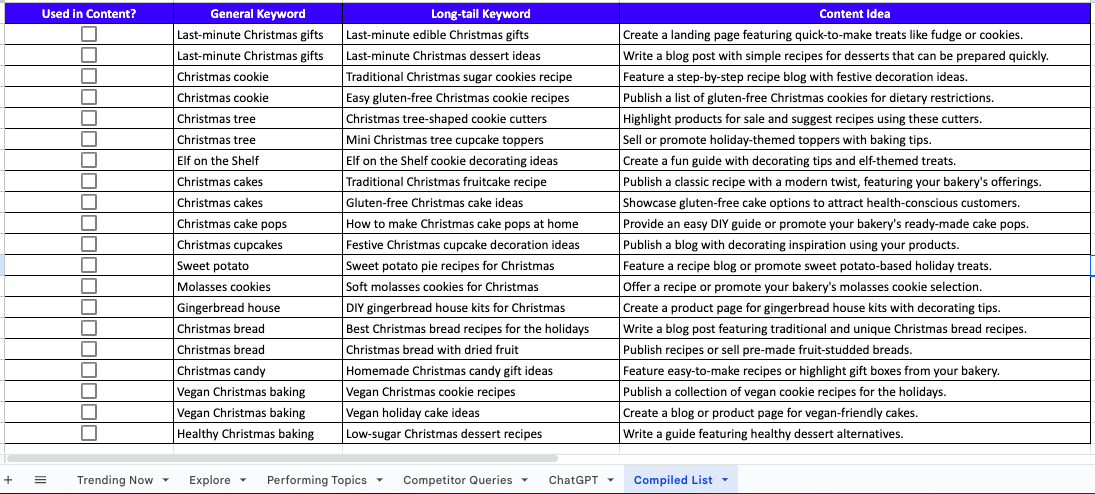 By now, you should have a solid batch of keywords from Google Trends refined using ChatGPT.
