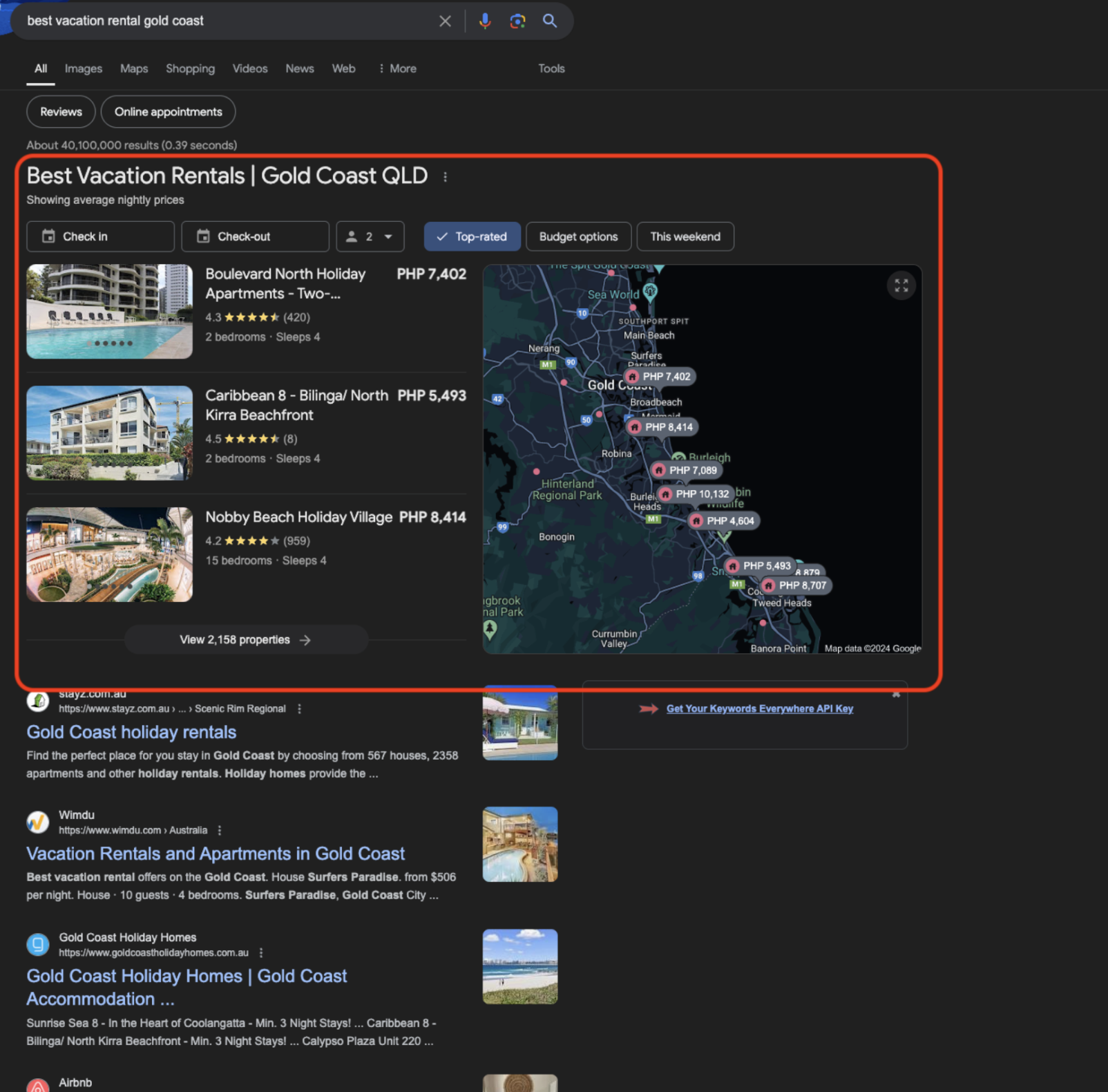Through local SEO, we optimize your business to appear prominently in search results. Let’s say you’re a vacation rental business in the area, and a family planning their holiday searches online “best vacation rental in Gold Coast.” Wouldn’t it be great if your business popped up first? That’s the power of local SEO.