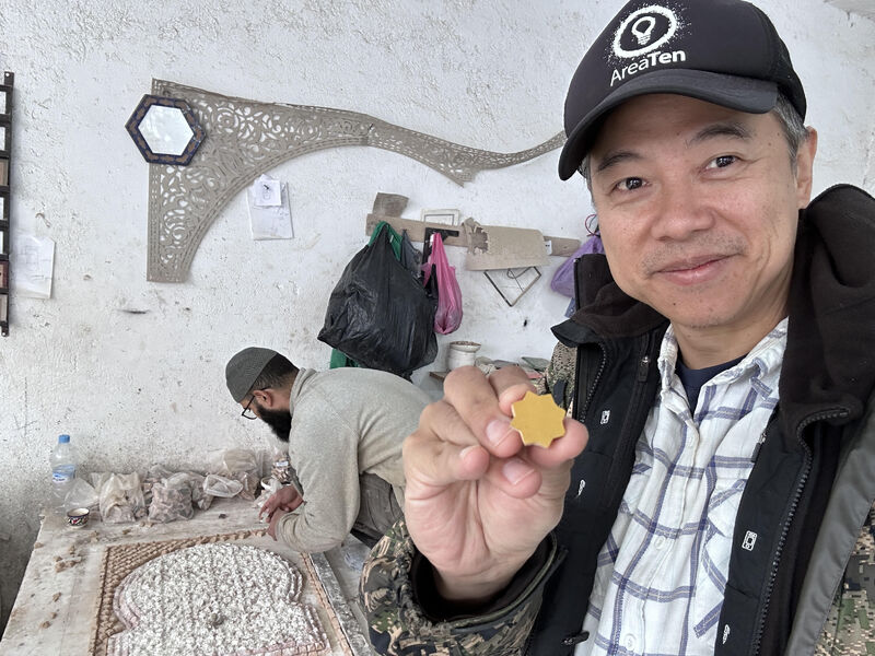 That’s pretty much what it looked like watching artisans in the Moroccan city of Fes assemble highly intricate mosaics called Zellij. This traditional craft involves hand-cutting coloured tiles into various geometrical shapes and carefully placing them colour-side down into a frame.