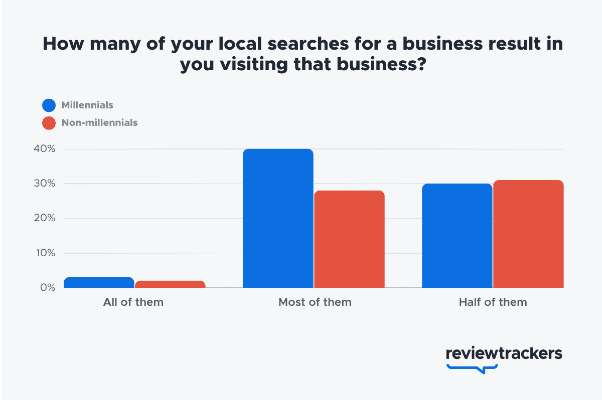 The graph above shows that 42% of millennials, for most of their local searches, will end up visiting the premises of the business they looked up. The numbers for non-millennials are pretty significant as well.