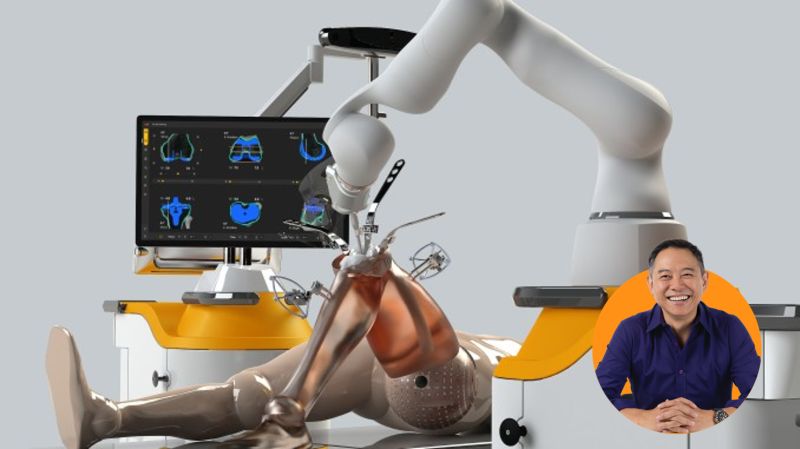 Everything seems straightforward until he starts talking about the latest in robotic knee surgery, where AI takes the wheel. The robot handles a significant chunk of the operation, but don’t worry, the surgeon’s still in the driver’s seat, configuring and overseeing everything.