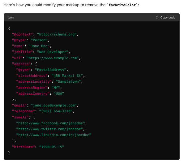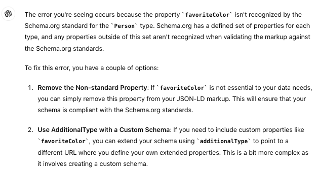 ChatGPT can in fact be especially handy for complex syntax issues or when you need to reformat data according to Schema.org guidelines.