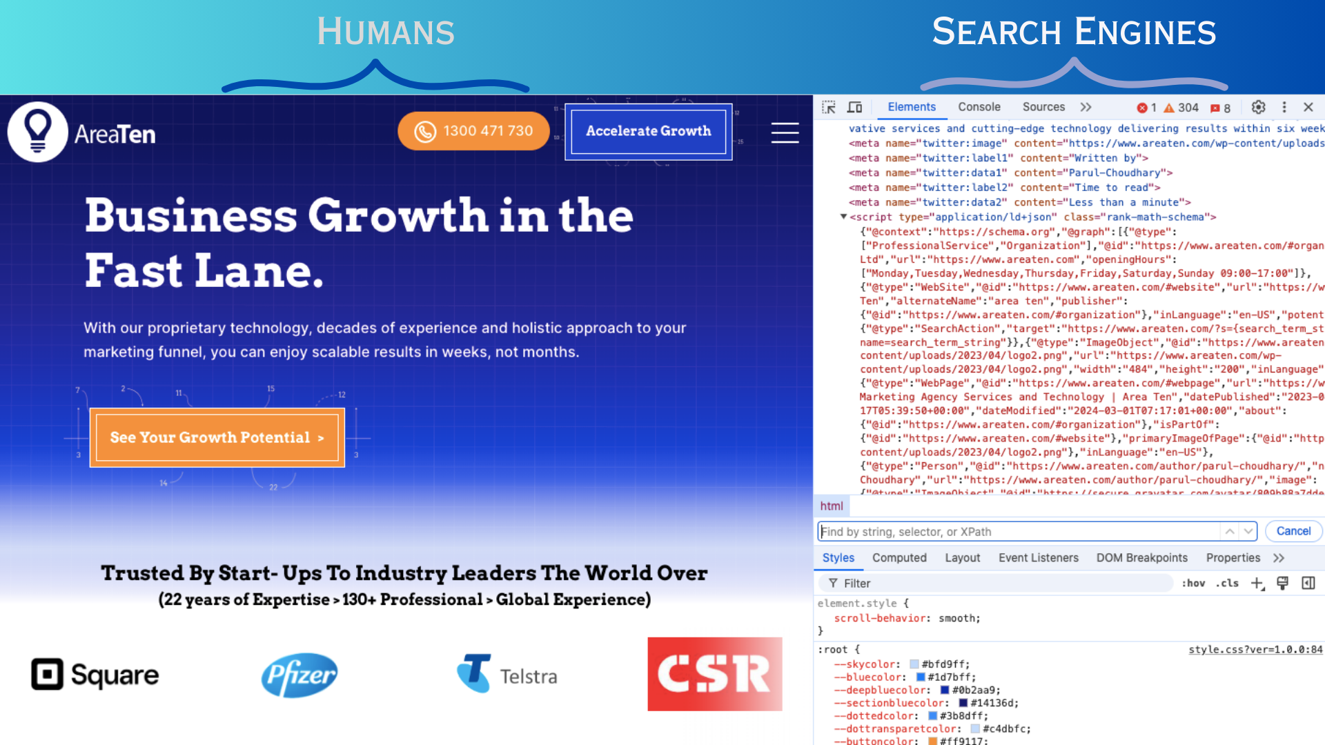 But search engines don’t see your site the way humans do—they look at the underlying HTML code of the webpage. They rely on structured data, like schema markup, to understand and categorize the content better.