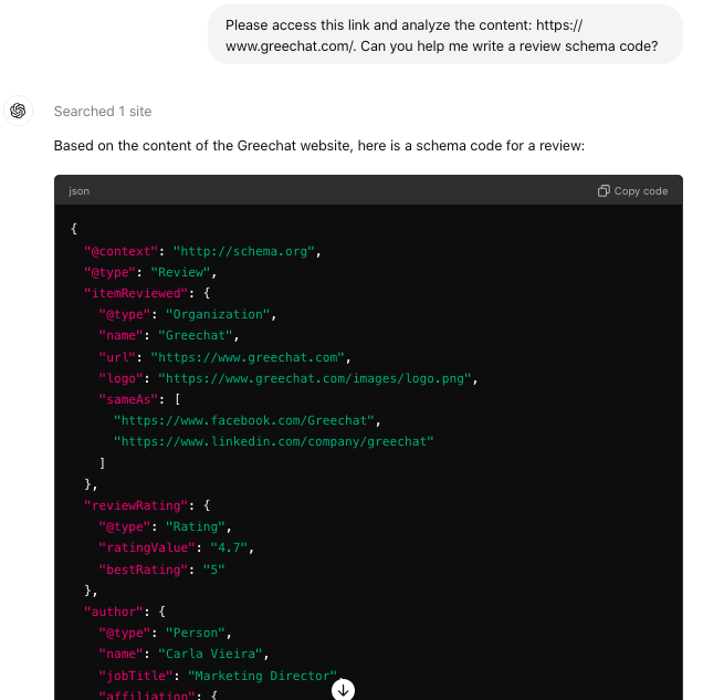 Pro tip: You can look into GPT models that can access or read links. They can pull the latest data from your URL to make sure the schema markup it will whip up is accurate and up-to-date.