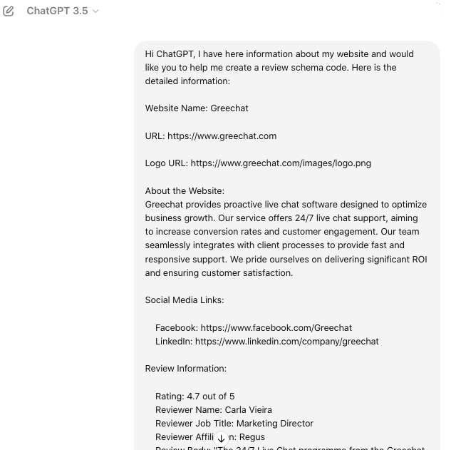 Initially, I tried giving ChatGPT minimal context and found that the generated schema was accurate but somewhat generic. However, when I started providing more comprehensive details about the content, the schema markup became much more precise and tailored.