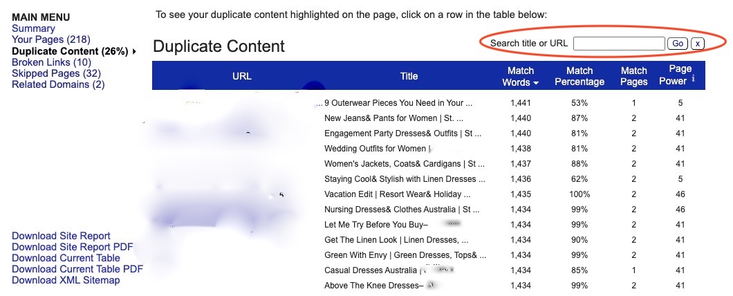 Step 3: Enter your own URL to see if any of your pages have similar content.